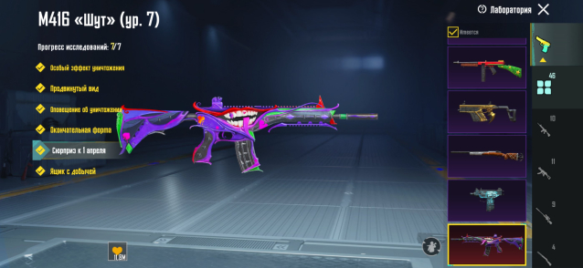 M24 «Семь морей» 4-lvl ⭢ M762 «8-битный пони» 4-lvl ⭢ MG3 «Парящий дракон» 4-lvl ⭢ AWM «Ослепительная змея» 1-lvl ⭢ AMR «Молчание мертвеца» 1-lvl