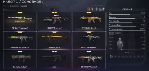 🔥Штурмовик (мета): |Корд 5.45 (+ Комодо)| → |MPAR-556 «Черные коты»| → |АК-12 | → |STK CMCR «Расплата»| → |АС «Вал» «Наследие»| → |QBZ-191 «Стрит-Арт»| → |FN SCAR-H «Элита»|
