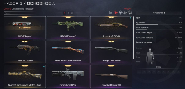 🔥Медик (мета): |Panzer Arms BP-21|→ |Marlin 1894 Custom «Капитал»|→ |Chiappa Triple Threat| → |Сайга-12С «Элита»| → |USAS-12 «Камыш»| → |MAG-7 «Якудза»| → |⭐Золотой Калашников MP-155 Ultima⭐|