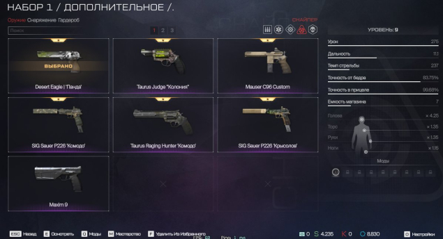 🔥Пистолеты 🔫: |Taurus Raging Hunter „Комодо“| → |Sig Sauer P226 „Комодо“ (+ Крысолов)| → |Mauser C96 Custom| → |Taurus Judge „Колония“| → |Desert Eagle „Панда“|
