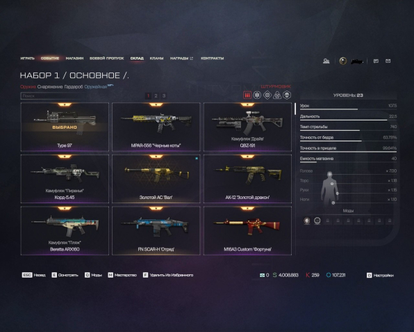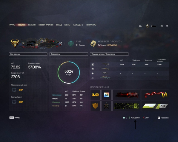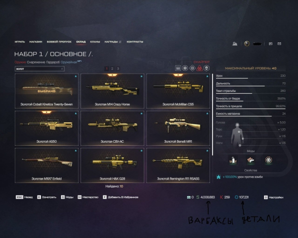 Подробное описание: Акк 2016 года с тремя персонажами на складе в общем 500 оружий из них 42 золотые+108тыс деталей ценная валюта и 4 миллиона варбаксов для прокачки хранилища на оружиях +178тыс корон+нашивки за выслугу лет от 1ки до 9ки в строю почти 9 лет и куплен боевой пропуск+золотой бык 1к в голову с ножа в пвп, МЕДИК: топ мета винчестер SXP и keltek kSG(14ур)+голд винчестер1887+голд маг7+голд калашников ультима(13ур)+юсас(14ур)+голд сайга12с(11ур)+панзер+голд марлин+гарибальди +голд браунинг+голд хант груп+чаппа+голд тавор тс12+голд бенели м4+мс255 зима+дживорс+голд фостечь+фабарм престиж+имбирное ружьё+узкон+камрад40ур и много старых дробовиков ИНЖЕНЕР: топ мета фамае саф 200(25ур)+голд ппш модерн+скар лпдв магма+скорпион картель+амб люкс+ханька стужа+хм8 компакт+пп кедр(29ур)+голд микро рони+ктар+таурус ст9+CSV9 +голд томсон+голд сих мпх+магпул+дезерт теч+SMG45 элита+коперхеды+голд SAR109+ACR CQB custom+АКС74У+беретта пмх+АМ17 и другое ШТУРМОВИК: топ мета тайп(23ур) и тайп97B+Фн скар(60ур)можно поставить 5 золотых модов+беретта ARX160(16ур)+голд асвал+QBZ(40ур)+м16 фортуна+мпар+корд(40ур)+ак12+голд стонер+голд пара+голд оц гроза+стк(40ур)+хк433(40ур)+хелион(40ур)+голд рпд+голд дп27+голд ф90 мбр+кас пдв+голд сурфаир+абакан квант+ак15+ПКМ Зенит 3 голд мода+хова тайп+энфилд+CZ брен+фн фал+мг5+голд печенег+голд ак47 и другое СНАЙПЕР: топ мета ах308 картель+PGMUltima+золотая крейзи хорс+голд макмилан+голд ас50+голд твенти севен+скс+сабатти+свч+чейтак и спэшл+астарта+авп+голд сву ас+голд бенели MR1+каряк+оц48+голд энфилд+винторез+голд джи28+голд ремингтон R11+DSA+MK14 EBR+голд авм и другое ВНИМАНИЕ БОЛЬШИНСТВО ПУШЕК НЕПРОКАЧЕНЫ+5 НОЖЕЙ с уникальными анимациями при нажатии кнопку R диверсант натиск+керамбит напряжение+зонт трость+бабочка молния и пиранья+голд керамбит+голд бабочка+куча старых ножей ПИСТОЛЕТЫ на всех40й уровень: голд дигл+голд сулун+голд сигсаур(4 голд мода)+глок пират+таурус хантер(4 голд мода)+голд R8+голд тек9+ст кенетик+маузеры(голд мод и 2 фиолетовых)+голд пэрот+пальцестрел и куча старых пестов ВНЕШНОСТИ: миротворцы+элитные горгоны+оборотни+отряд арктика+авроры+пандоры+нанокостюмы мужские и женские+конкистадоры+арахниды на все классы+3 скинаCOS: АГЕНТЫвепрь+варан+лотос+тайшань+клинок+уайт+баудо+корсар+балу+олег климов+маори+тигр БРОНЯ: варяг+сирокко+боевое+спектр+элитная+графит+авангард+шторм+абсолют+кевларки и куча старой снаряги УСТРОЙСТВА ГРАНАТЫ и т.д открыты все уровни в сервисах вип на 4 месяца+супер вип наполтора месяца+ускоритель оруж-ого мастерства на 3 недели+15%й ускоритель опыта навсегда+серии ледник, тень, апачи, гидра, пират, сокровище, кратер, реликвия, драконоборец, неон, паразит, механика, токсин, большойкуш, каратель, злой санта, хардрок, блэквуд, чёрный дракон после оплаты скидываю логин и пароль, родная почта маил ру везде без привязок и полная перевязка К ВАШЕМУ НОМЕРУ проверяете и подтверждаете заказ отзывы покупателей читайте в моём профиле акк качал лично в ручную после покупки аккаунт возврату не подлежит если я не в сети ждите