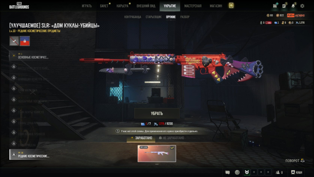 1) Скриншоты — ibb.co/album/35B8m8 🟡 LVL = 51 🟢 G-COIN = 60 🔴 Battle Points (BP) = 922 🟡 Скинов = 60 🟡 🟢 🔴 Легендарный, Улучшаемый, Прогрессив Скин на SLR: «Дом Куклы-Убийцы» 🔴