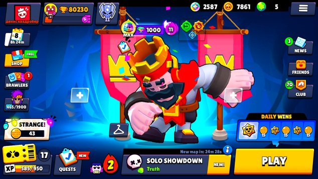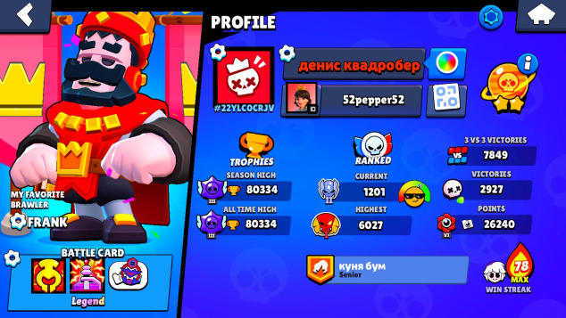 Краткое описание: BR214 | 🏆80230 Кубков | 95 Бойцов⚔️ | 37 Гиперов💢 | 41×11⚡ | 40K GEM Скинов💎 | РЕДКИЙ АКК🔥