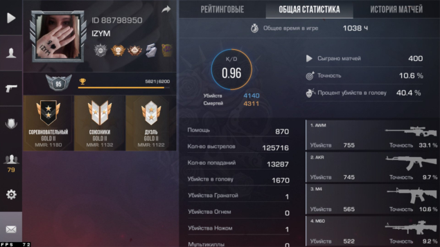 1000+ часов | 5 медалей, ветеран 2022, и др | инвентарь на 5к голды 2 ножа и перчи |, Gold ll