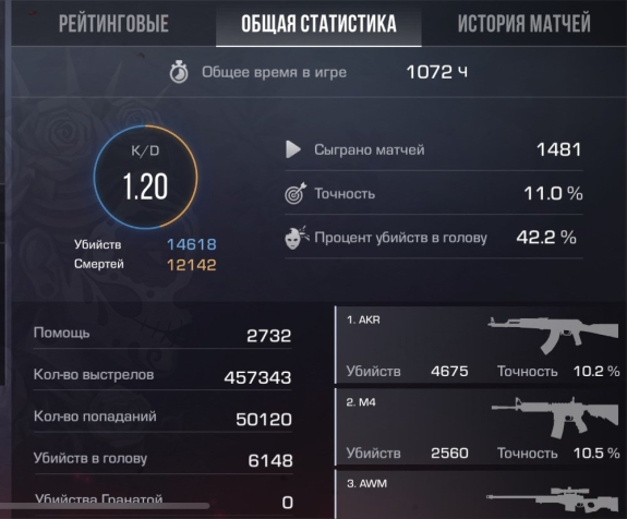 — На аккаунте сыграно часов: 1072