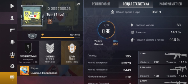 Звание: Gold llКраткое описание: 76 lvl 60 голды, нож за 600г, есть клан, и бронз медаль