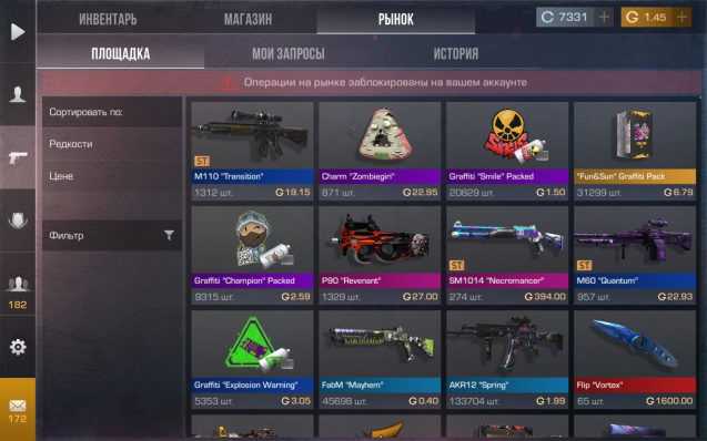 заблокирован рынок в игре.