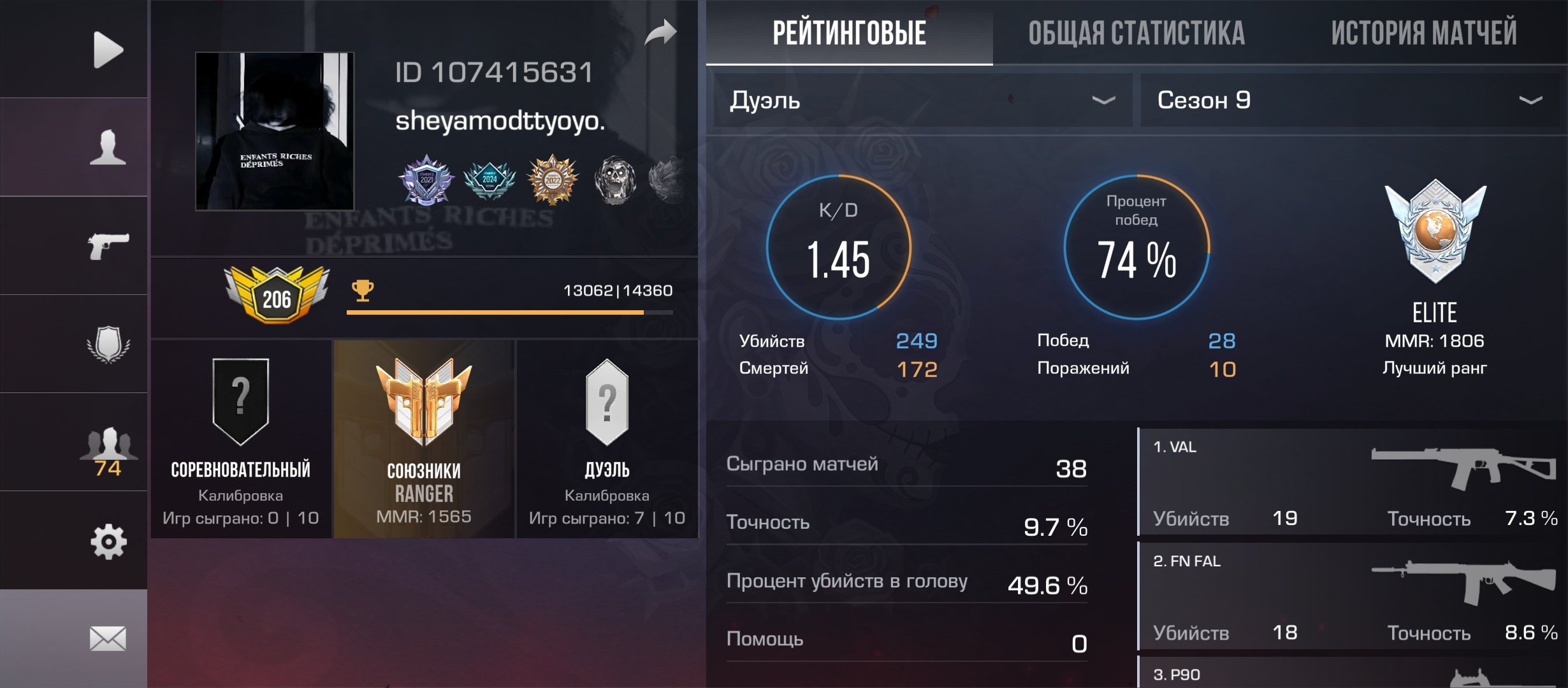 ⭐РЕЙНДЖЕР В НЫНЕШНЕМ СЕЗОНЕ, ЭЛИТА В ДУЭЛЯХ ЗА ПРОШЛЫЙ СЕЗОН, ЧЕМПИОН В НАПАХ ЗА ПРОШЛЫЙ СЕЗОН⭐