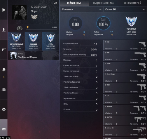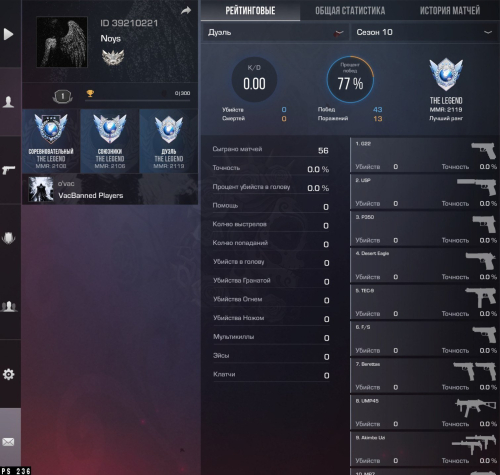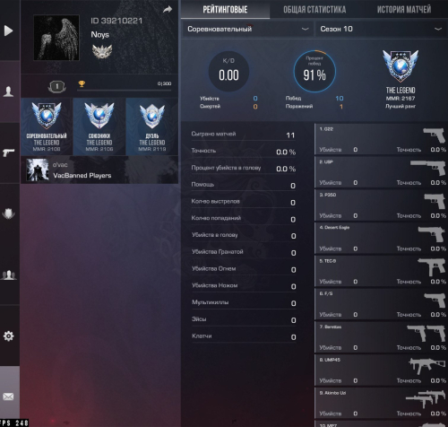 Звание: LegendКраткое описание: ✝️《ID — 39210221》《ММ/НАПЫ/ДУЭЛИ — THE LEGEND》《4 МЕДАЛИ》《ПУСТЫЕ CЕЗОНЫ КРОМЕ 10》《ПРИВЯЗКА GOOGLE》✝️