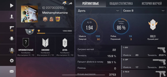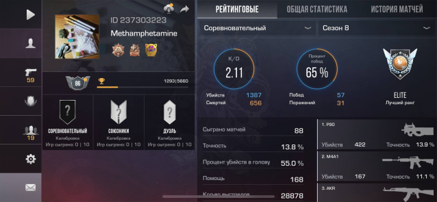 Звание: EliteКраткое описание: Акк с хорошим кд элита в 8 сезонк