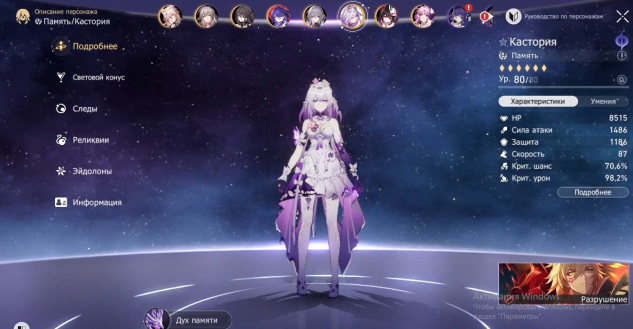 Краткое описание: ГиацинаE0S1, Кастория, ГертаE0S1, Искорка, Воскресенье, АхеронE0S1, Цзяоцю + еще 8+ сюж до 3.1 + откр 44