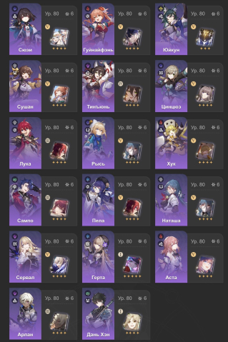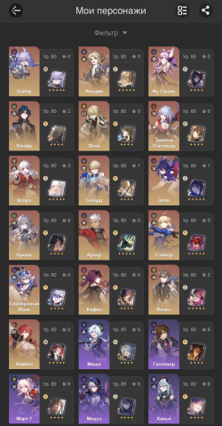 Подробное описание: 5* персы: Кастория, Темень, Кирена, Дань Хэнь ОП, Гисиленса, Фаенон, Зарянка, Светлячок, Топаз, Великая Герта, Жуань Мэй, Цзинлю, Ахерон, Кафка, ЧЛ е2, Фэйсяо, Хо хо, Блэйд е2, Сэйбер, Трибби, Фу Сюань, Зеле, Арчер, СВ, Мидей, Воскресенье, Рацио, Авантюрин, Лоча, Клара е3, Химеко, Яньцин, Гепард е1, Байлу, Вельт е2, Броня е6.