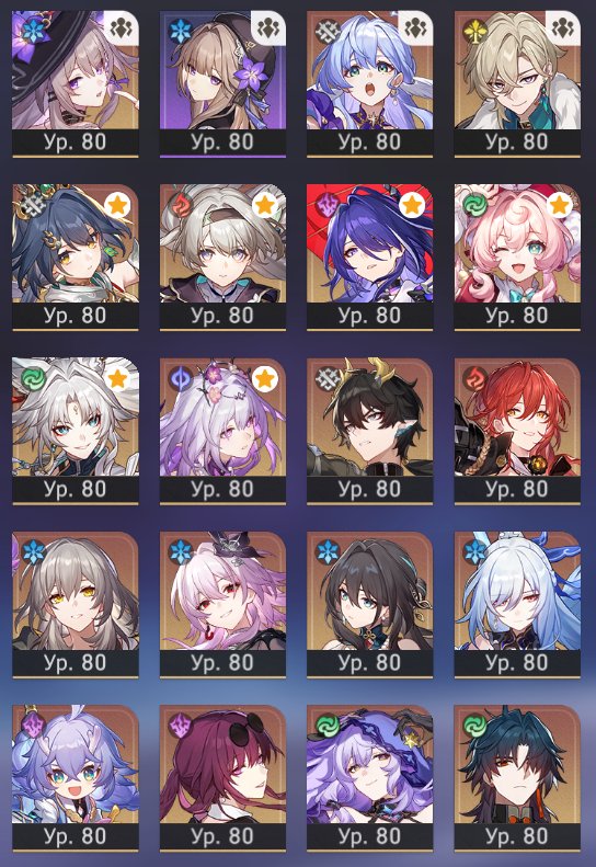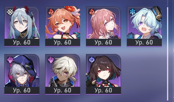 Краткое описание: 29 5* персонажей, все 4* персонажи ( для подробного информации смотрите описания)