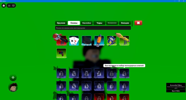 Есть все обычные оружия + некоторые донатные (покупались за ключи).