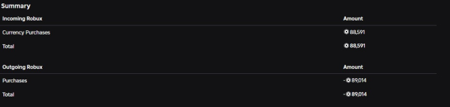 Ответ: TOTAL — это общая сумма ROBUX, потраченных на аккаунте. Это не сумма ROBUX на аккаунте!