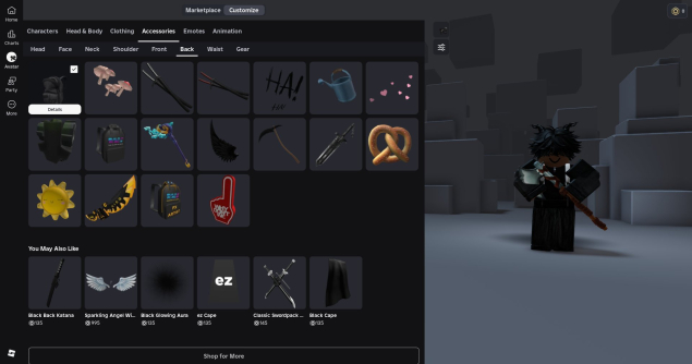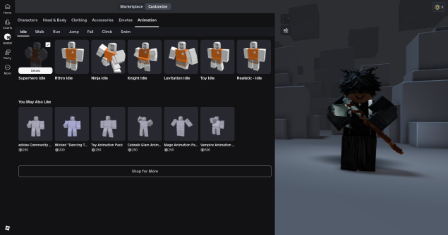 Еще на аккаунте имеется дофига анимаций(ходьбы) и акксессуаров с одеждой.