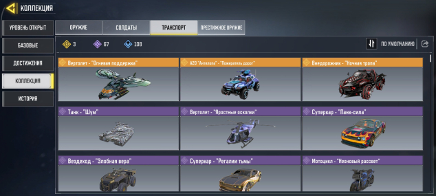 Легендарный транспорт, гранаты и т.д