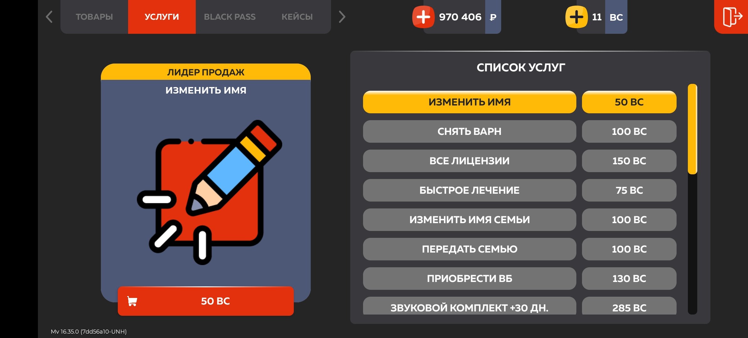 купил(а) Вирты на Rodina RP за 1000 ₽