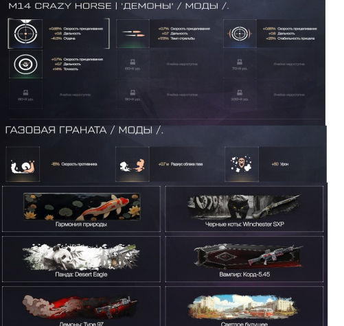 ❄️ Снайпер: M14 Сrazy Horse «демоны», CheyTak M200 «натиск», Bushmaster BA50 «полтергейст» (в след. обновлении мета)