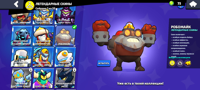 🟡Легендарные: 1 (робо Майк)