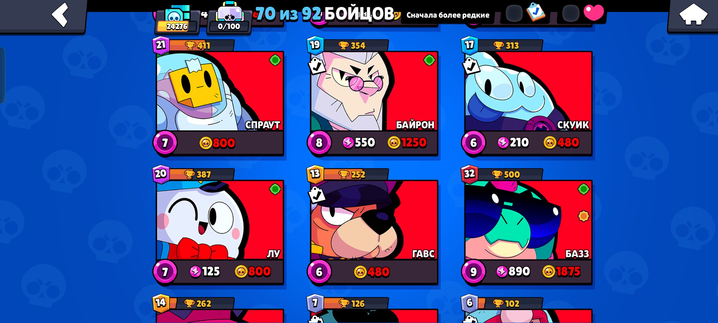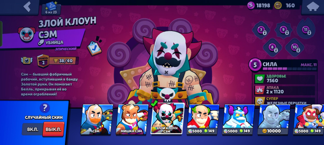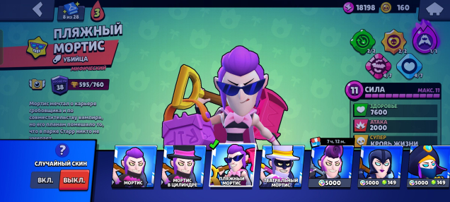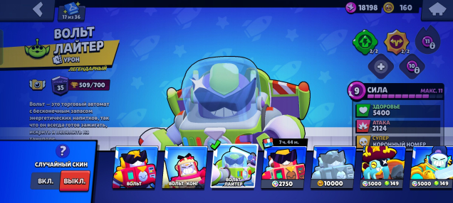 1 Мифических Скина🟥 (Squad Busters Шелли), 1Легендарных Скина🟨 (Вольт Лайтер), 1 Гиперзарядных Скин🟫 (Пляжний