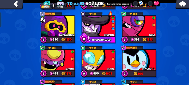 На аккаунте имеются игровые ресурсы, а именно: 90 блингов, 2875 монет, 31 гем💎, 18.198 очков силы.