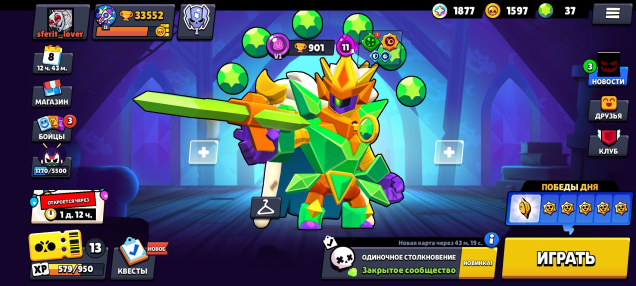 ✔️ 1.8к Блингов / 1.5к Золота / 37 Гемов / 128 Спереев / 208 Иконок Игрока ✔️