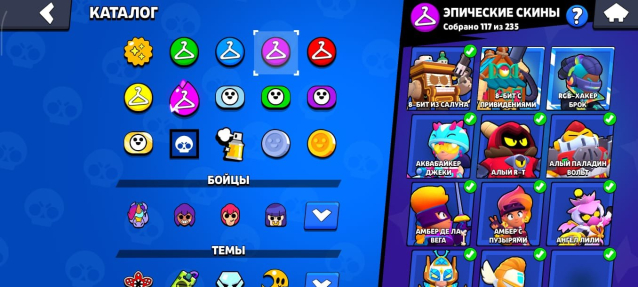 Уникальные скины в виде — Звездная шелли, Нита Красный нос, Король варваров Булл, Пират Поко, Соевый Деррил, Санта Бо.