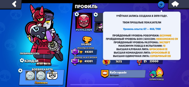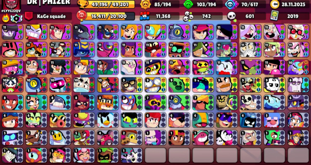 📅 Создан в 𝟐𝟎𝟏𝟗 | 🔥 𝟐𝟓𝟔 скинов | 💪 𝟗𝟕/𝟗𝟕 бравлеров (𝟑𝟖 на 11-й силе)