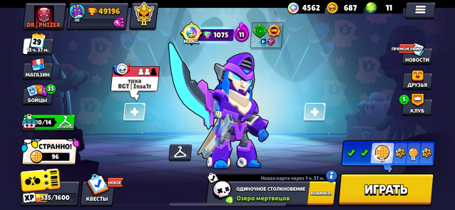 • 𝟔𝟖𝟕 монет 💰 / 𝟏𝟏 гемов 💎 / 𝟒𝟓𝟔𝟐 блингов 🎟️ / 𝟏𝟐𝟔𝟑𝟑 очков силы 🌟