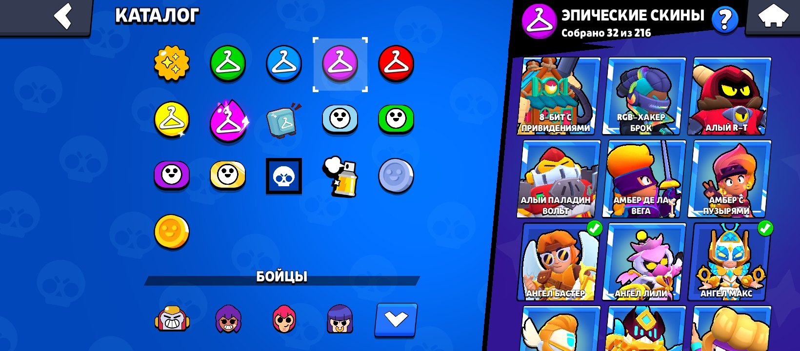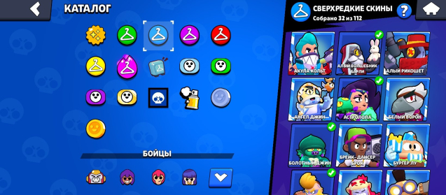 🔮Редкие скины: чумной доктор ворон, динамайк со сладостями, хо-хо-хо бо, красный дракон джесси, классическая шелли, классический динамайк, рикошет, мегаящик дэррил, призрак скуик, хеллоуинский леон, омега-ящик дэррил, синоби эш, король варваров булл, ангел бастер, мрачный гас, заклятый враг тара, тануки спраут