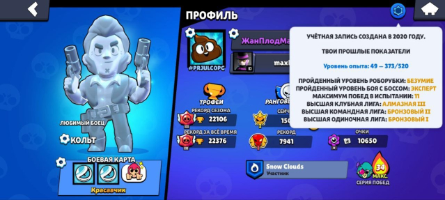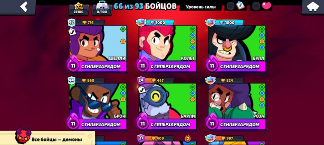 Подробное описание: Очень жирный аккаунт под основу с перепривязкой. 3600 монет 1200+ блингов. Легендарная лига. 28 гиперзарядов. 26600 очков силы 16 фулл персов куча скинов 5к трио. Много скринов скину в лс. Есть серебряный кольт. Скинов и гиперов намного больше чем на прикрепленных скринах, за большим количеством скринов пишите в лс. в добавок идет аккаунт клеш рояль 3400 кубков.