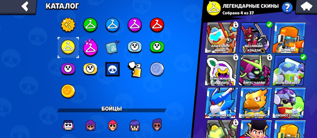 🔮Редкие скины: торговец гэйл, белль голдхэнд, ганфайтер кольт, сантамайк, олень грифф, красный дракон джесси, классическая шелли, ретро брок, рикошет, мегаящик дэррил, всадник без головы сту, гниющий гас, омега-ящик дэррил, синоби эш, король варваров булл, ангел бастер, небесная мэг, безликий кэндзи, заклятый враг тара, тануки спраут, тэнгу анджело
