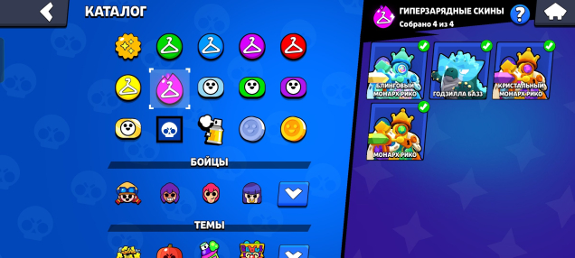 🔥ГИПЕРЗАРЯДНЫХ СКИНОВ🔥: 4 (ГОДЗИЛЛА БАЗЗ, МОНАРХ РИКО, БЛИНГОВЫЙ МОНАРХ РИКО, КРИСТАЛЬНЫЙ МОНАРХ РИКО)