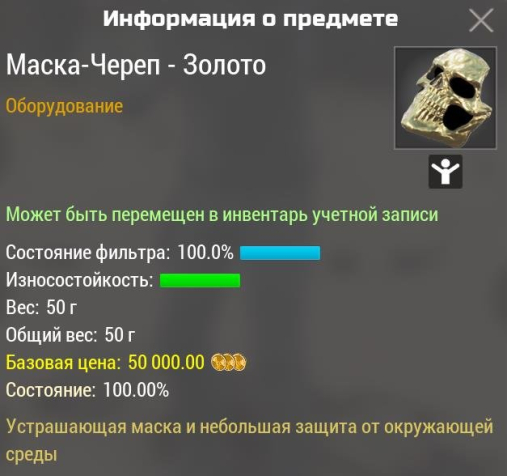 Сервер: RU-5Краткое описание: ✨🟢 Маска-Череп — Золото 🟢 Любой сервер 🟢✨