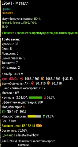 Сервер: RU-7Краткое описание: L96 A1 Металл урон 33.4%, куча -96.7% износ +23.3, любой сервер