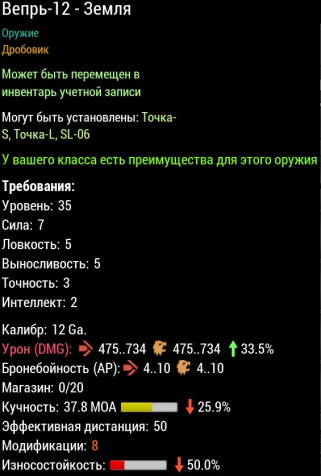 Сервер: RU-1Краткое описание: PVE Вепрь М8 Земля +33.5% к урону (475-734), кучность 37.8МОА, износ -50% (Любой сервер)