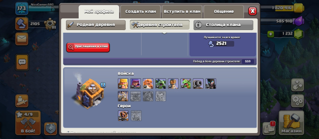 Уровень Ратуши: 13Краткое описание: 🌠Быстрая выдача🌠Почти Full 13 TХ🌠5👨🔧1190💎Герои 61/65/43/13🌠есть пиксели (скин и оформление)🌠скрины⬇️