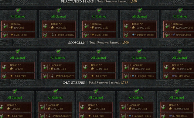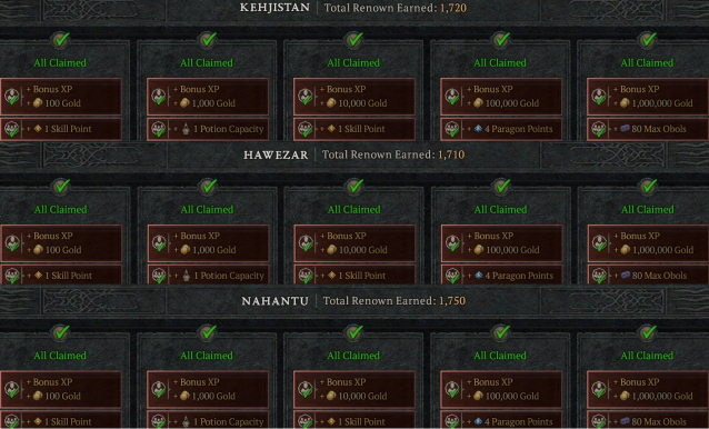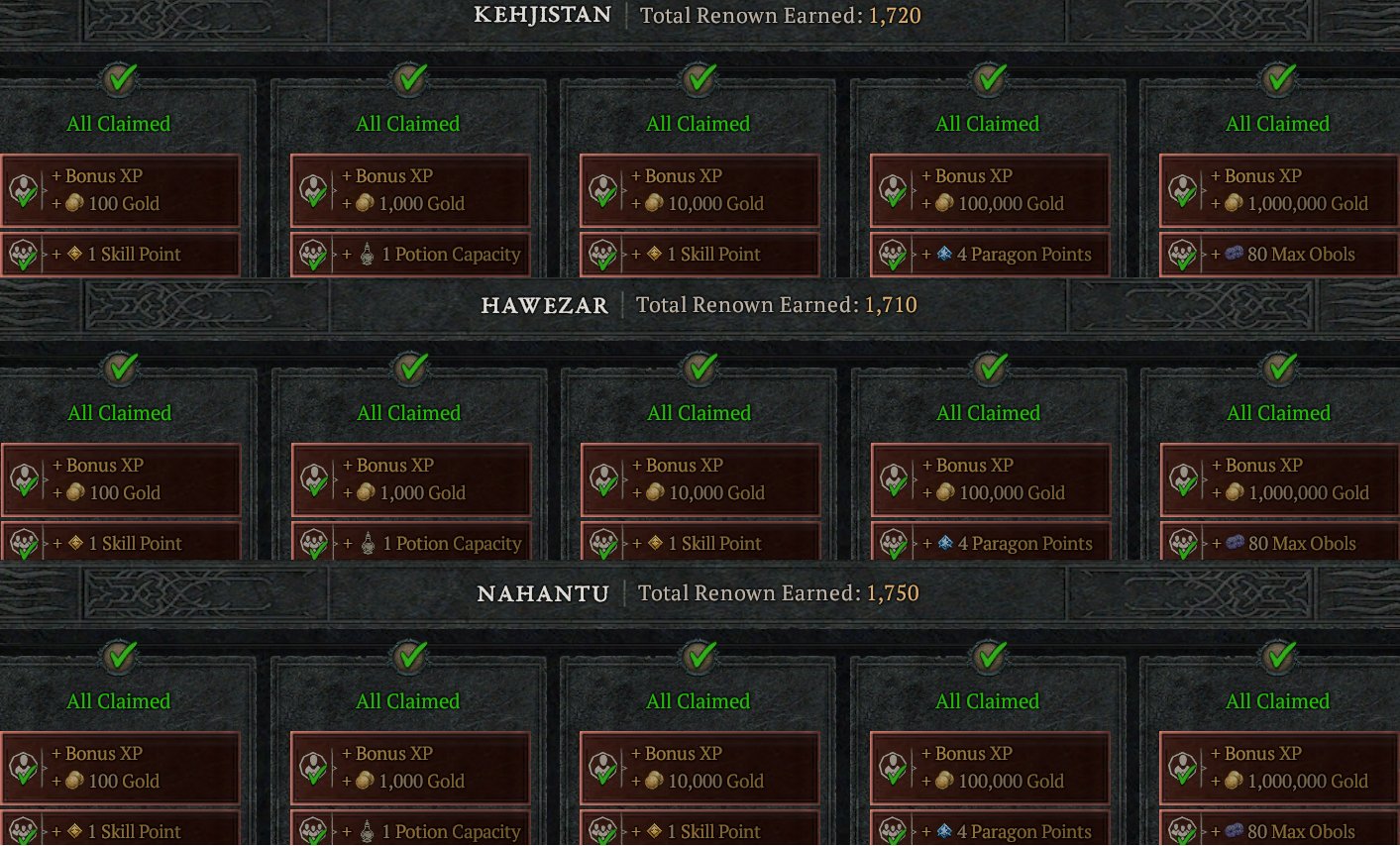 1) Прокаченная репутация для каждого региона. (бонусные очки навыков и парагона)