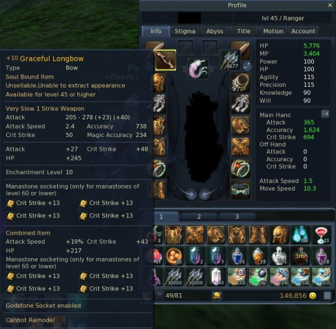 Graceful Bow 45lv +10 fused with Grogget's Bow (crit)