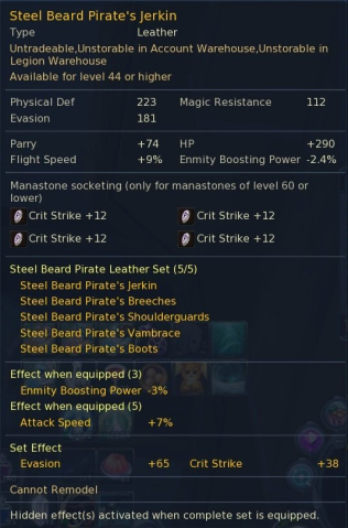PvE Steel Rake Leather Set 44lv 5/5 (crit/attack)