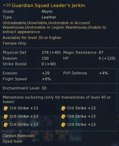 PvP Guardian Abyss Leather Set 30lv +10 5/5 (crit/hp)