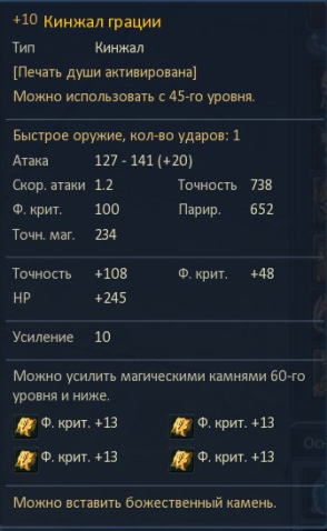 Фул 30 голд АП бижа (40 пояс с дера), пушки: грация +10 нож и атин меч на ск. атаки +7, остальной шмот проходной, скрины ниже.