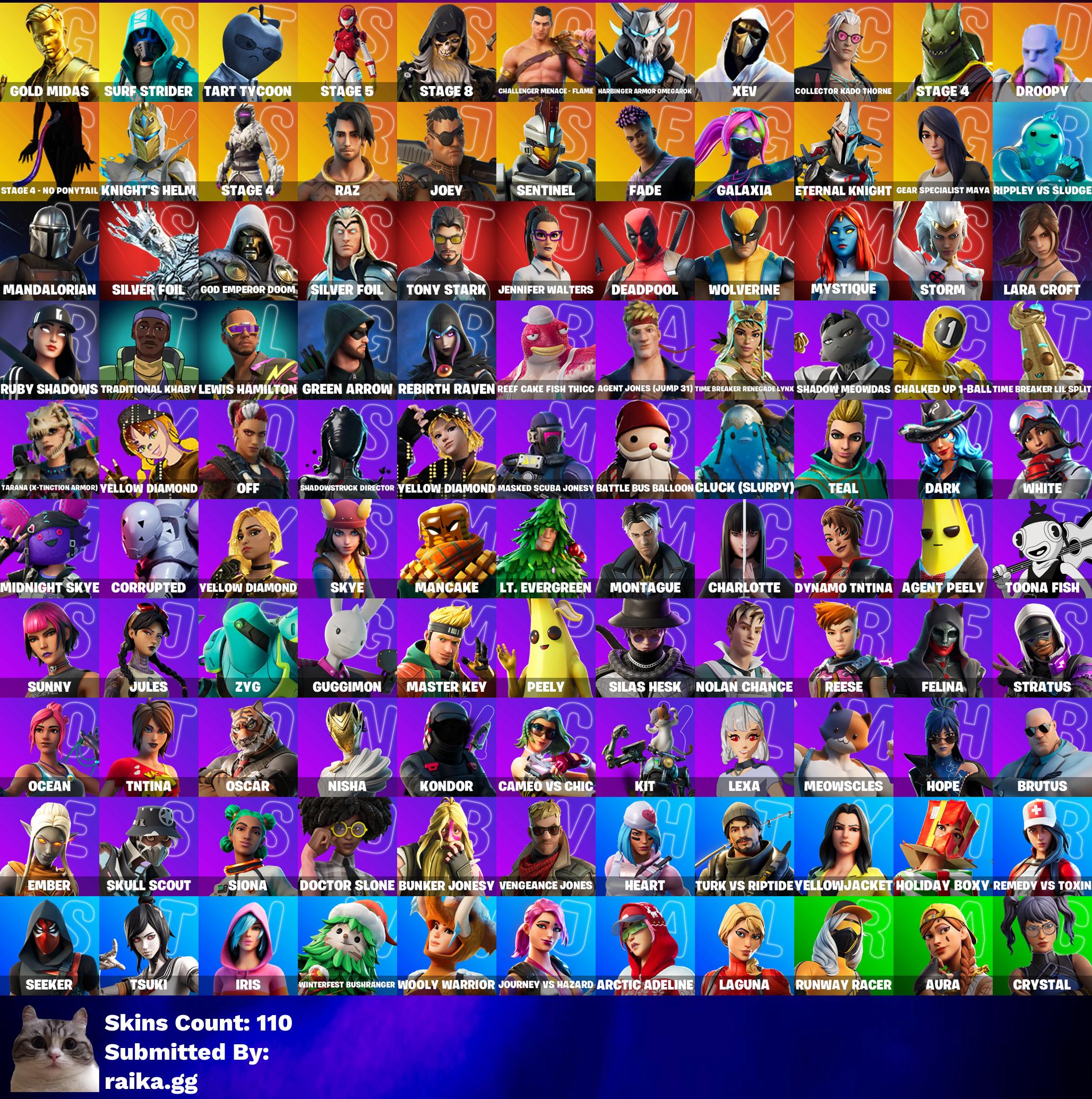 • После покупки вы получаете аккаунт Fortnite со 110 скинами (возможно наличие купленного PVE-режима). Данные игры + данные почты. Аккаунт будет с задержкой для смены почты.