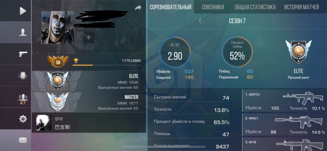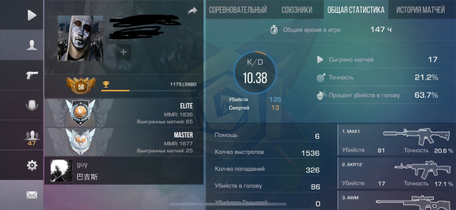 Звание: EliteКраткое описание: ELITE☠️🟠КРАСИВАЯ СТАТИСТИКА🟠🟡 ТОПОВОЕ КД🟡☠️АЙДИ 201000001 🔥🎊ИНВЕНТАРЬ НА 500г💯🎊