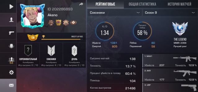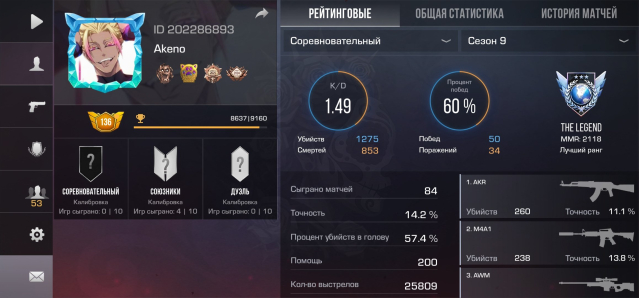 Звание: LegendКраткое описание: ТОП АККАУНТ 8 СЕЗОН ЛЕГЕНДА 9 СЕЗОН ТРИПЛ ЛЕГЕНДА 4 МЕДАЛИ