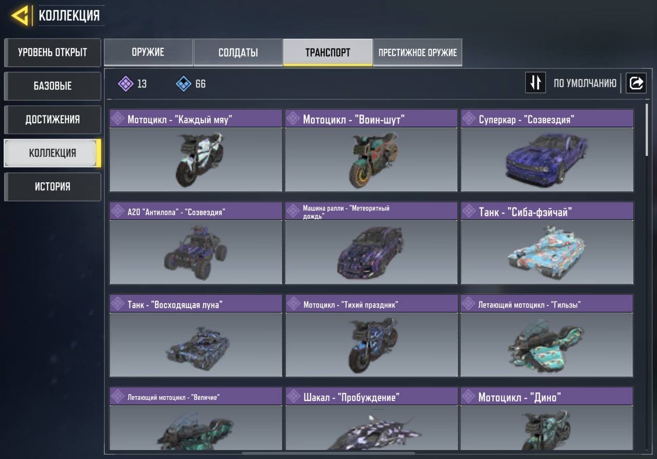 ✅️ ТРАНСПОРТ: 13 ЭПИК, 66 РЕДКИЙ🚗
