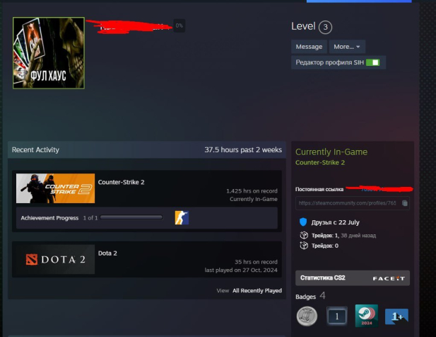 💚 Steam: CS2 Prime есть. 1400 часов. 2 медали в КС (за 2025 год, и за премьер 2 сезон), 3 LVL Steam. Запретов/банов/ограничений нигде нет.