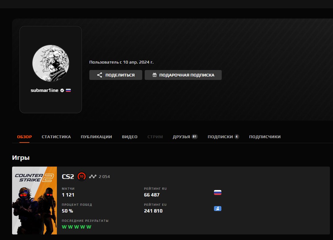 Краткое описание: 🖤 FACEIT 10 LVL 🖤 2054 ELO 🖤 1121 MATCHES🖤 VERIFED 🖤 WITH NATIVE MAIL 🖤 1000 FACEIT POINTS