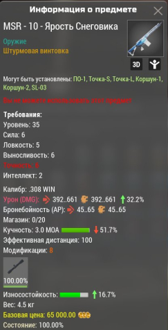 Сервер: China-3Краткое описание: (МСР10) MSR-10 -Ярость Снеговика м8 (392-661) 32.2% урон -51.7кучность +16.7 износ (все сервера)